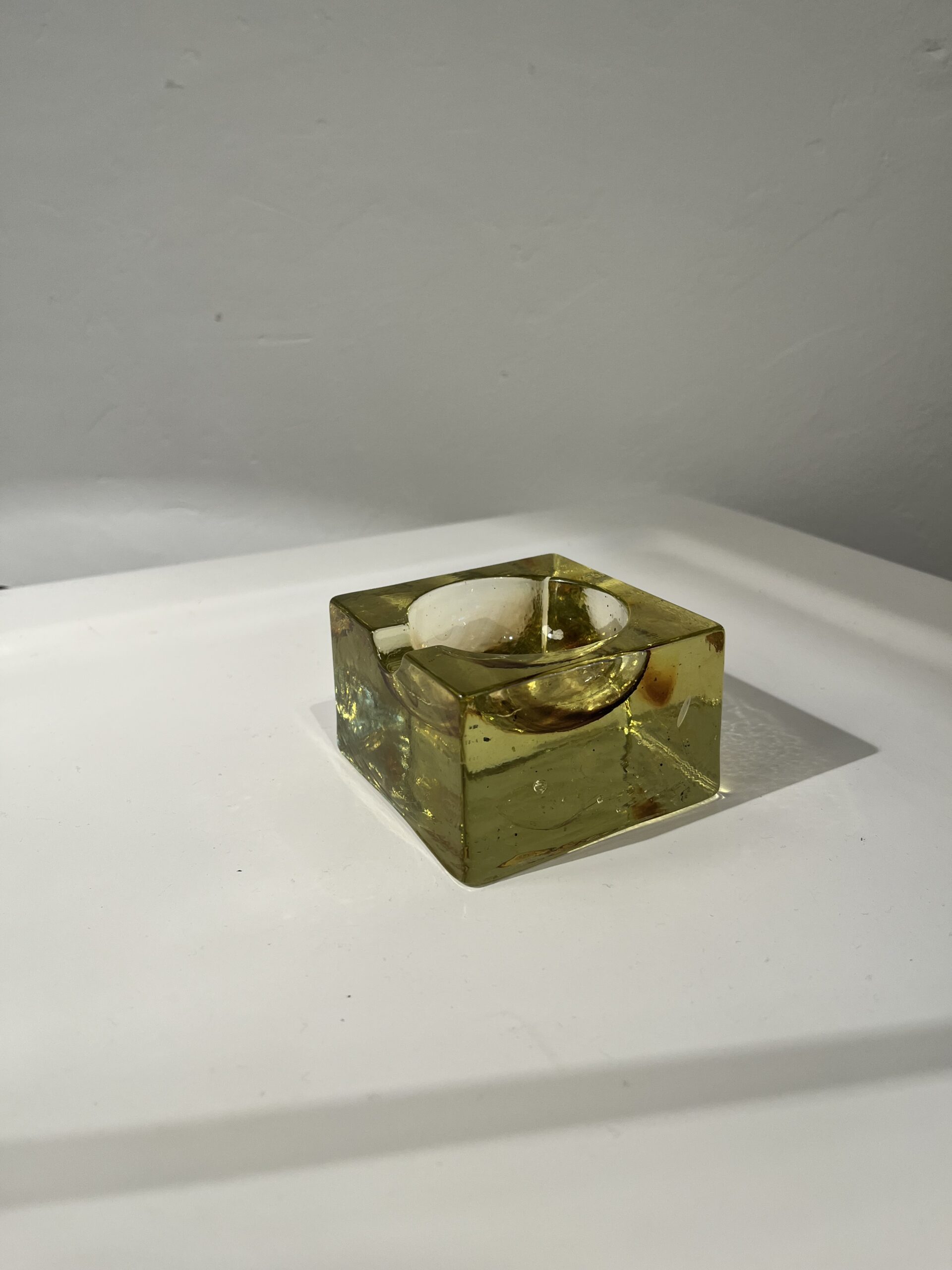 Table basse carrée fibre verre laquée blanche design Marc Berthier France 1970 72x72 H33 cm (légères marques d’usage)