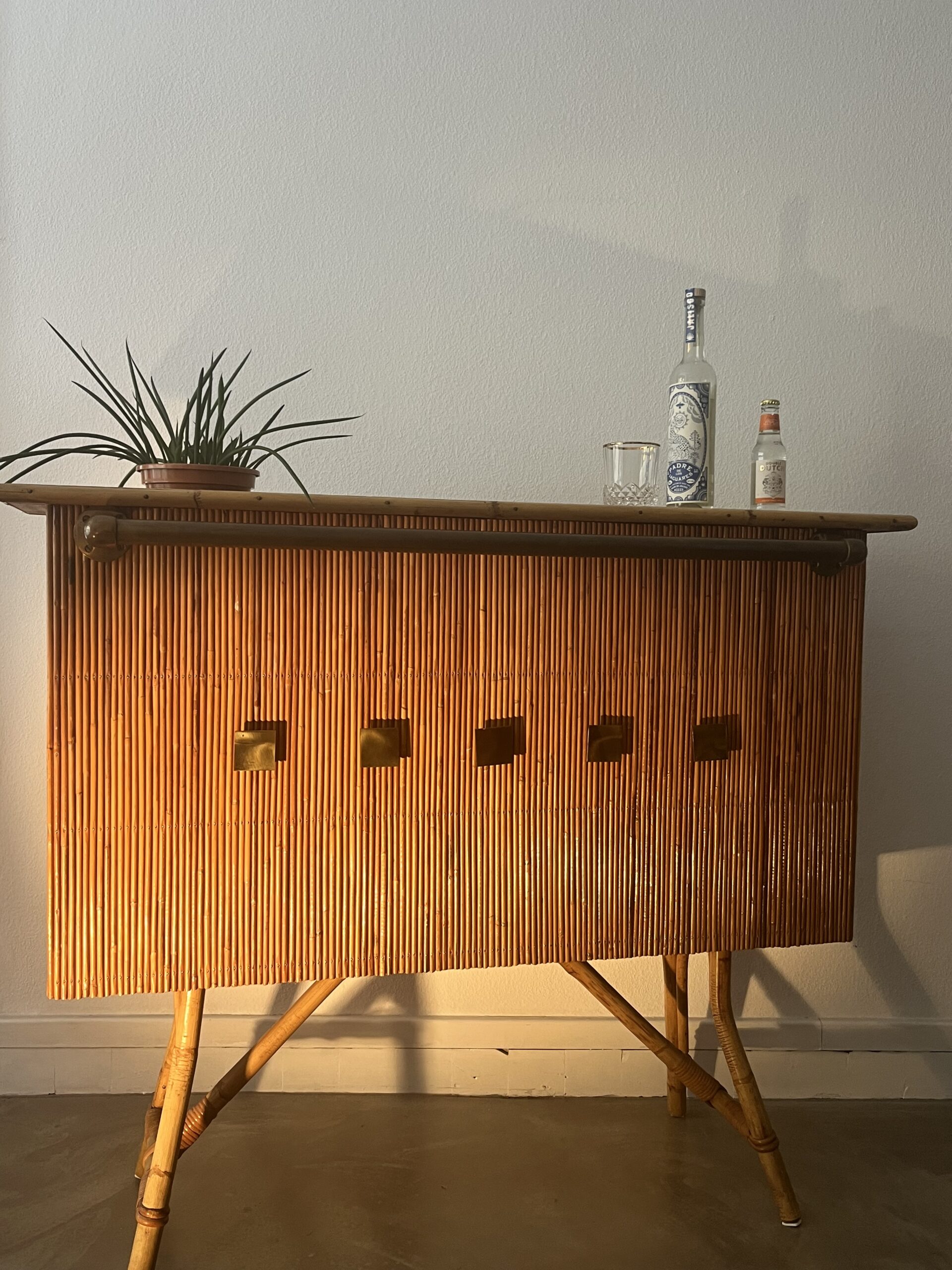 Banc en rotin « peanut » pieds métal chromé édition limitée IKEA 1990s excellent état 112x40 H42 cm