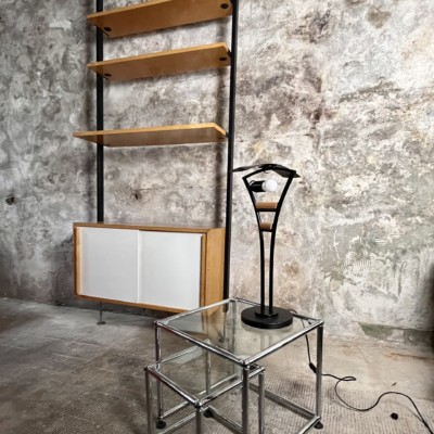 Étagère démontable W.Kienzle pour Embru Suisse design 1930 avec caisson circa 1960 bois acier noir pavatex blanc h.200 39x92 - 2 pièces dispo.-