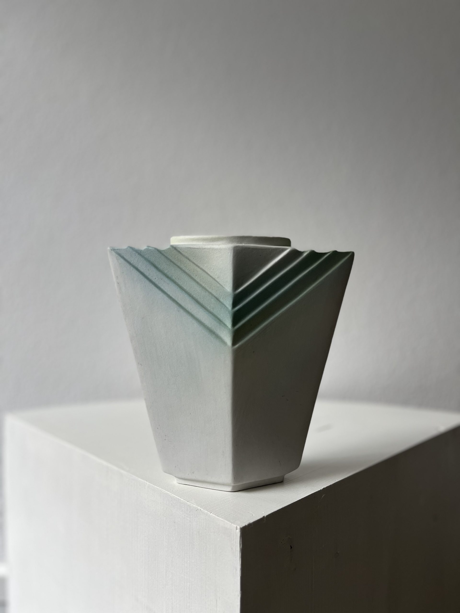 Céramique artistique motifs abstraits émaillés jaune, rouge, vert et bleu signature non attribuée H 21 cm