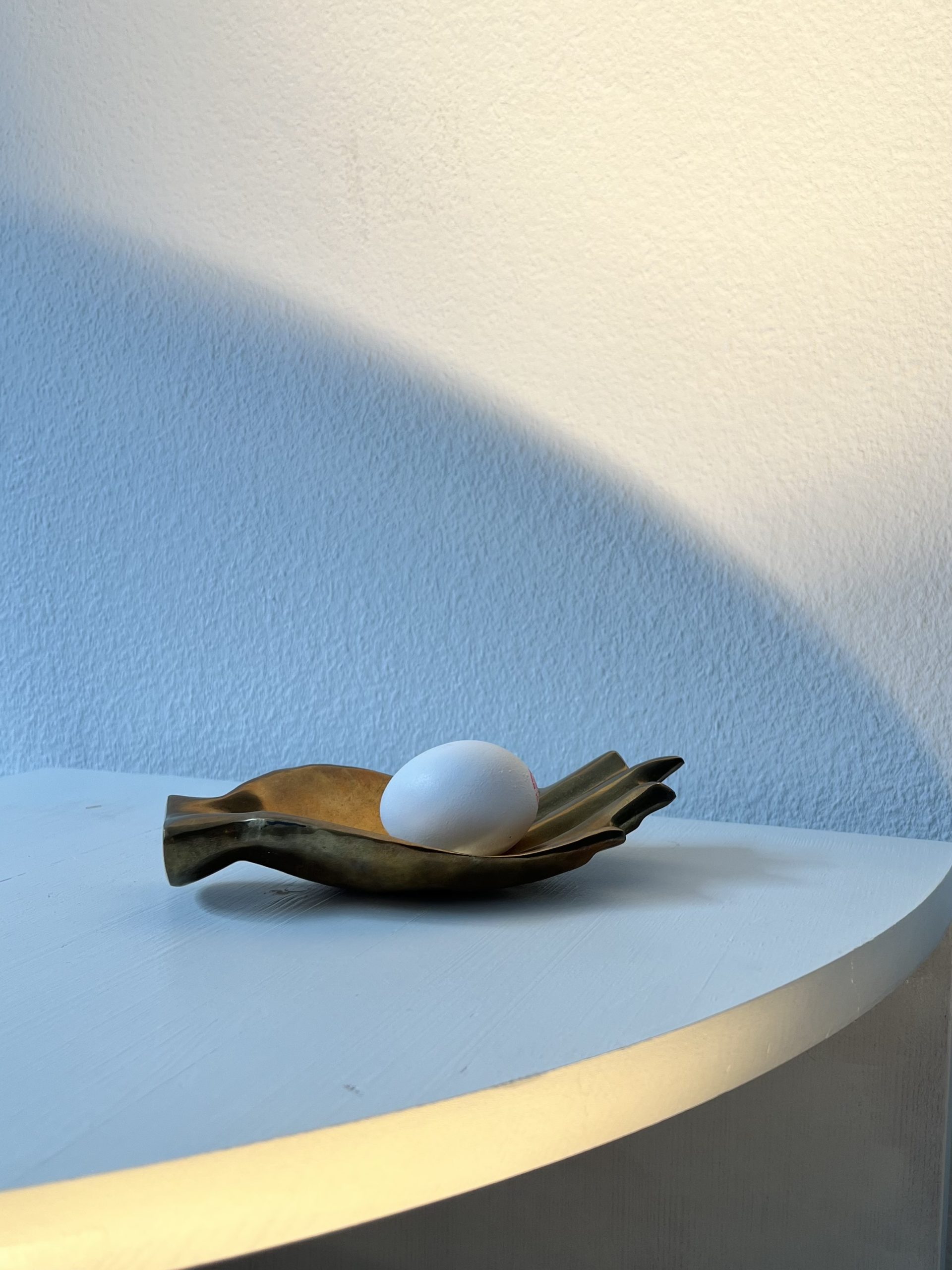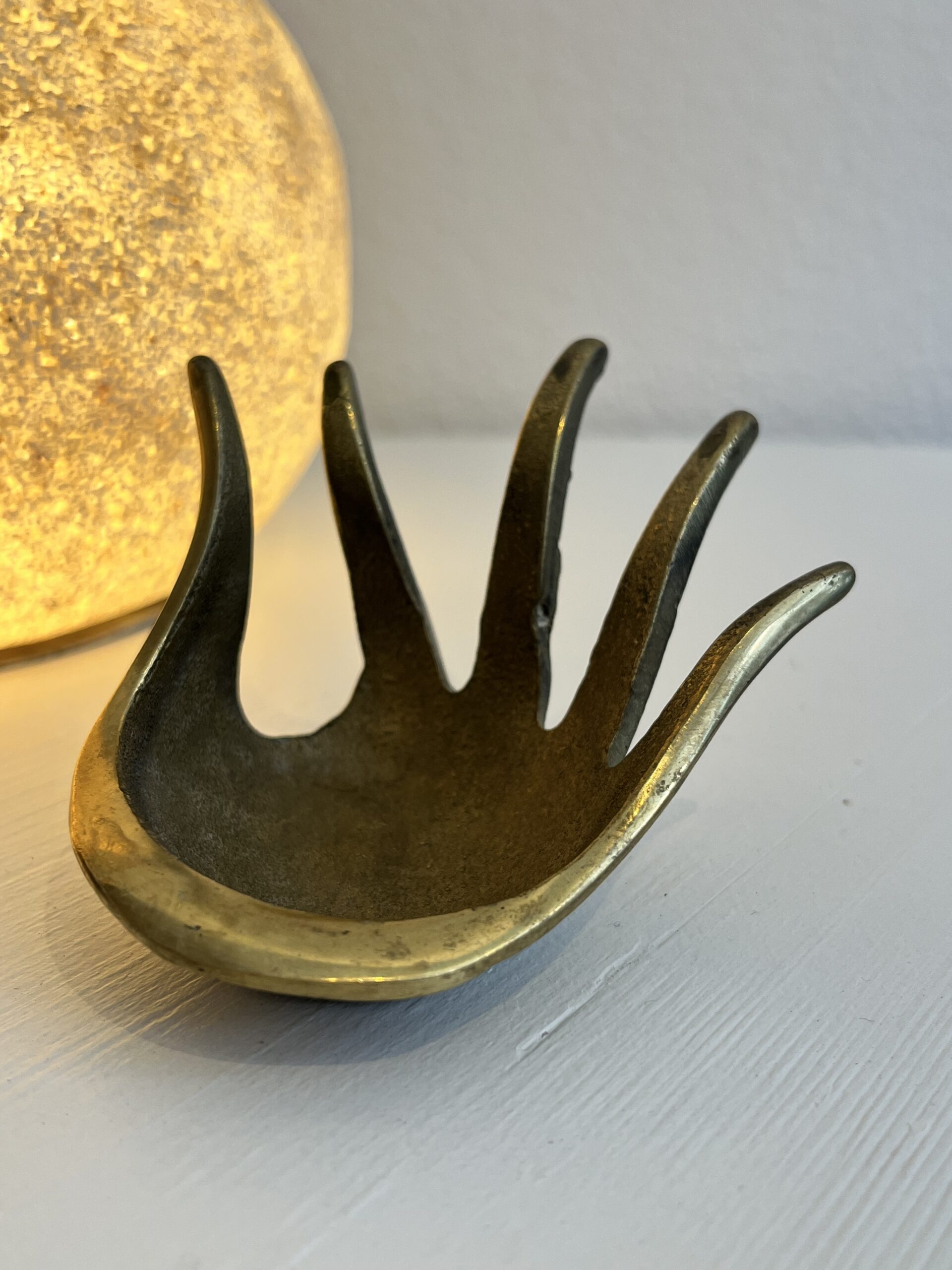 Suspension cuivre et métal blanc design Burg Giebichenstein VEB Metalldrücker Allemagne 1970 d.18 h.21 cm
