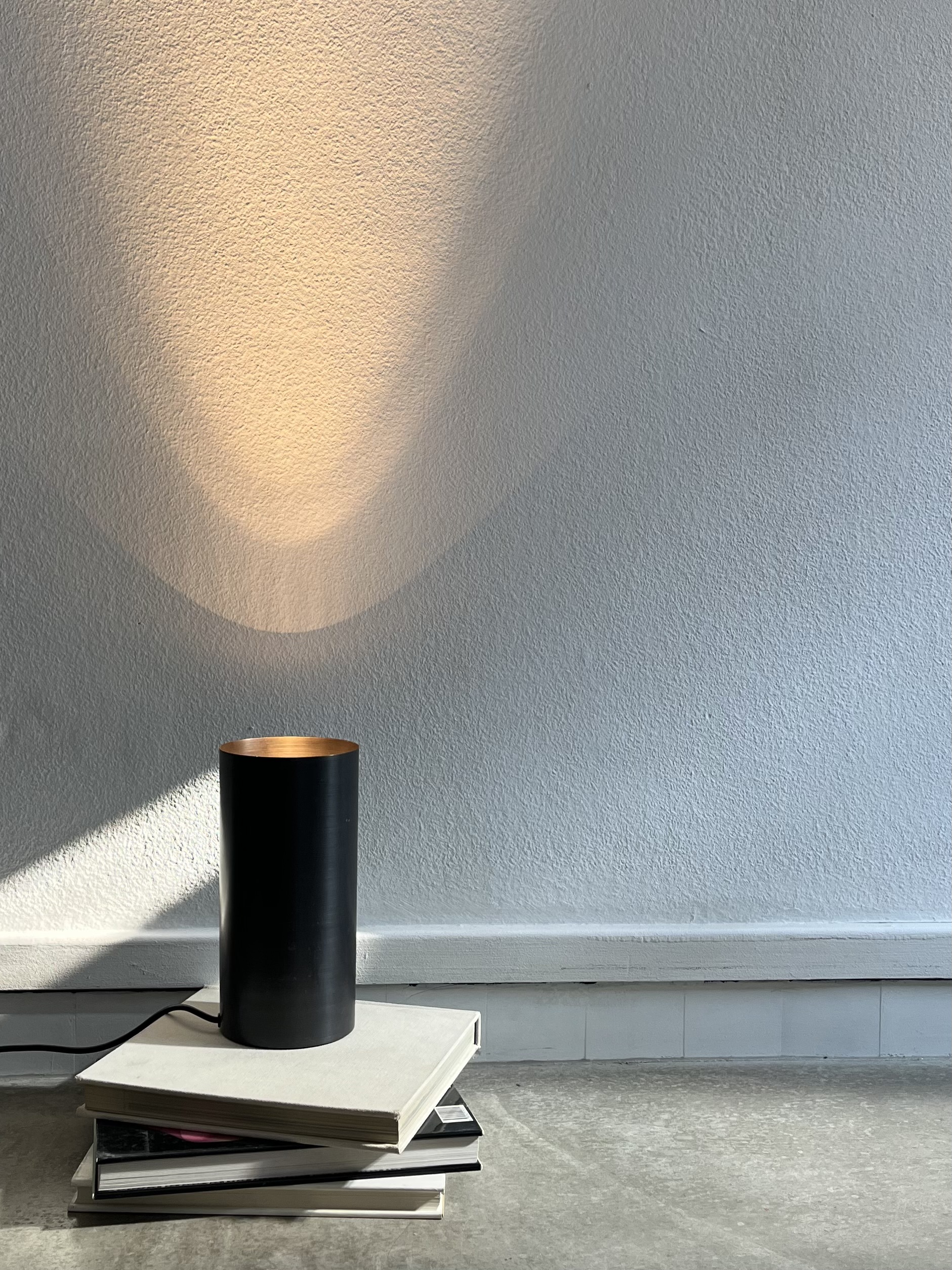 Lampe de sol tube en bronze brossé design Stephane Davidts Belgique design contemporain H26 D13 cm