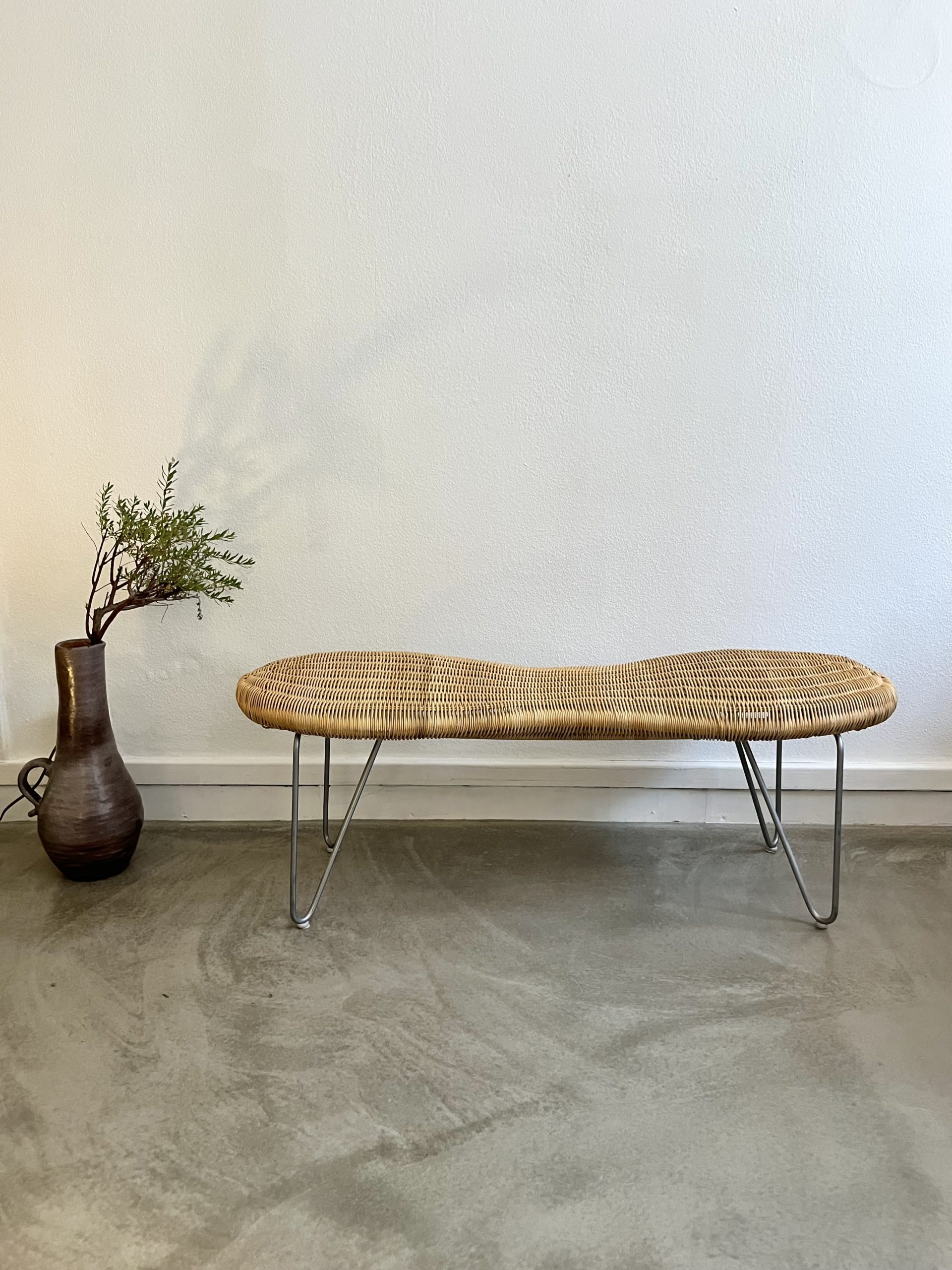 Banquette en rotin « peanut » pieds métal chromé édition limitée IKEA 1990s excellent état 112x40 H42 cm